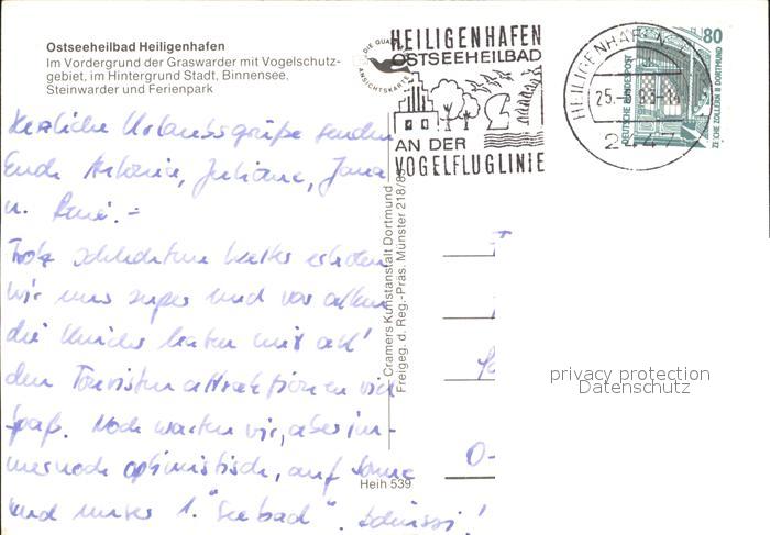 72247237 alte Postkarte Heiligenhafen Ostseebad Graswarder mit Vogelschutzgebiet Fliegeraufnahme postalisch gelaufen Erhaltung siehe scans KatCode: 11110001055021