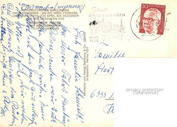 72852747 alte Postkarte Heiligenhafen Ostseebad Hafen Faehre postalisch gelaufen Erhaltung siehe scans [FriedD77] KatCode: 11110001055021