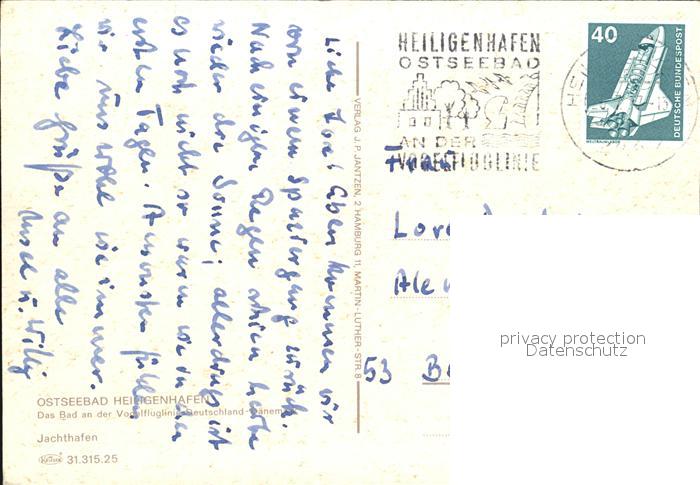 72451322 alte Postkarte Heiligenhafen Ostseebad Jachthafen postalisch gelaufen Erhaltung siehe scans KatCode: 11110001055021