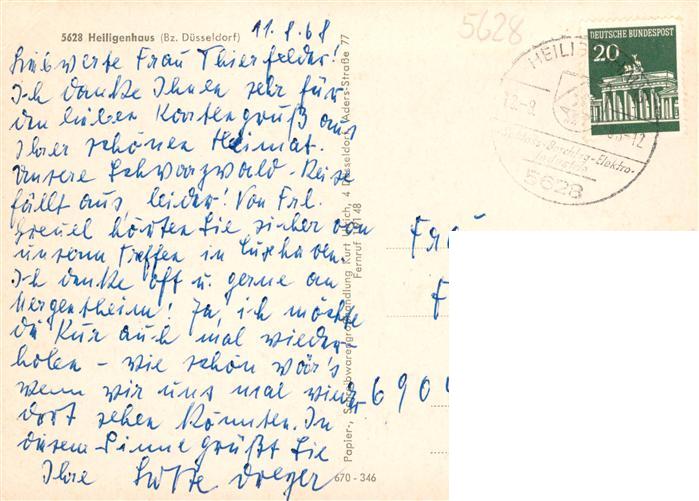 73943363 alte Postkarte Heiligenhaus Mettmann Kirchplatz AEG Wehrturm Freibad Turnhalle Haus vor der Kirche Ehrenmal Abtskueche postalisch gelaufen Erhaltung siehe scans [WerneD78] KatCode: 11110005158012