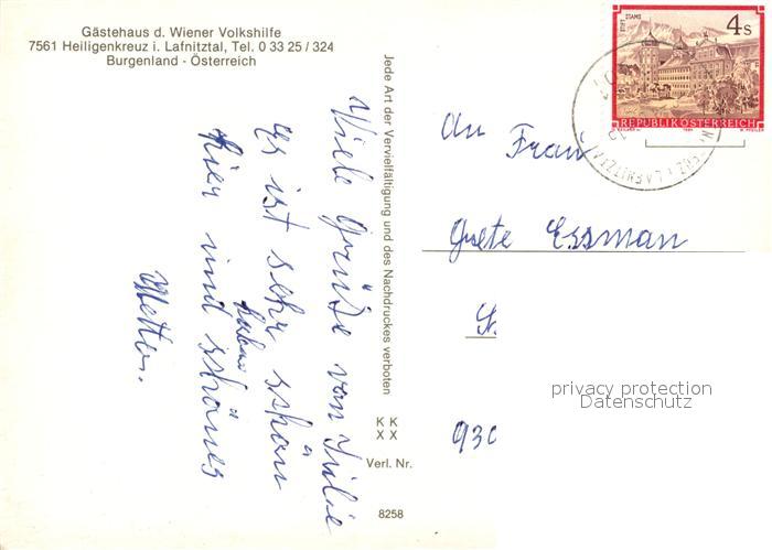 73162336 alte Postkarte Heiligenkreuz Lafnitztal Gaestehaus der Wiener Volkshilfe postalisch gelaufen Erhaltung siehe scans [FriedD77] KatCode: 11390113010503