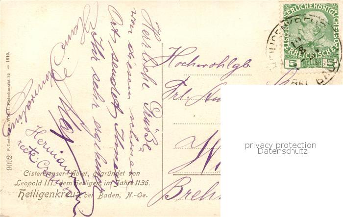 43094274 alte Postkarte Heiligenkreuz Niederoesterreich Cistercienser Abtei postalisch gelaufen Erhaltung siehe scans [WerneD78] KatCode: 11390127030613