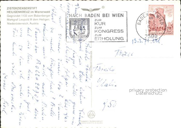 72277036 alte Postkarte Heiligenkreuz Niederoesterreich Fliegeraufnahme Zisterzienser-Stift postalisch gelaufen Erhaltung siehe scans KatCode: 11390127030613