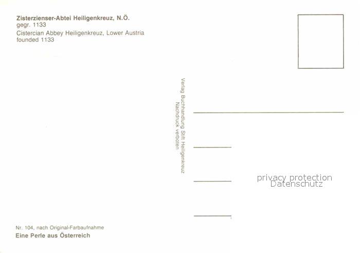 72806744 Heiligenkreuz Niederoesterreich Zisterzienser Abtei postalisch nicht gelaufen Erhaltung siehe scans [FriedD77] KatCode: 11390127030613