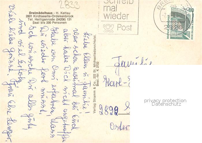73087409 alte Postkarte Heiligenrode Bremen Dreimaedelhaus Kirchseelte postalisch gelaufen Erhaltung siehe scans [NatalD47] KatCode: 11110003251037