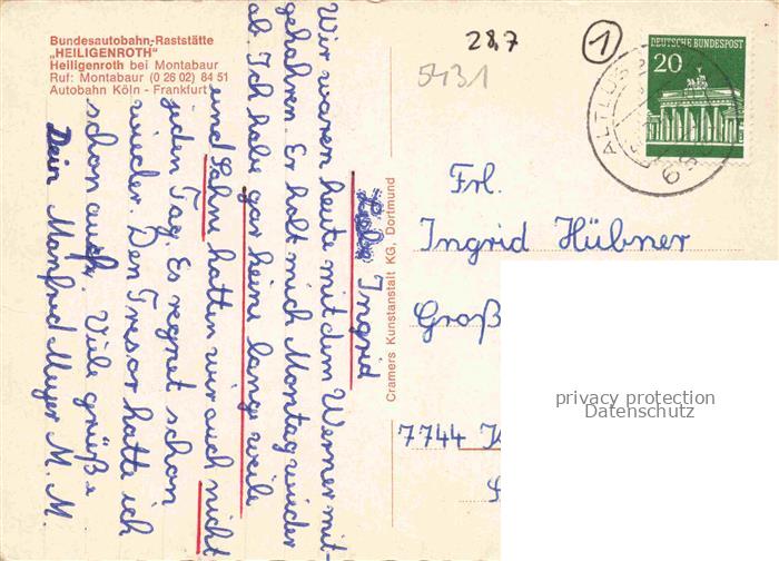 74052528 alte Postkarte Heiligenroth BAB Raststaette Heiligenroth Autobahn Frankfurt-Koeln postalisch gelaufen Erhaltung siehe scans [WerneD78] KatCode: 11110007143027