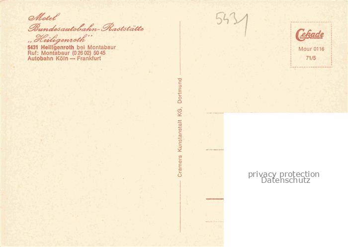 74041038 Heiligenroth Motel BAB Raststaette Heiligenroth Zimmer Gastraum Park postalisch nicht gelaufen Erhaltung siehe scans [WerneD78] KatCode: 11110007143027