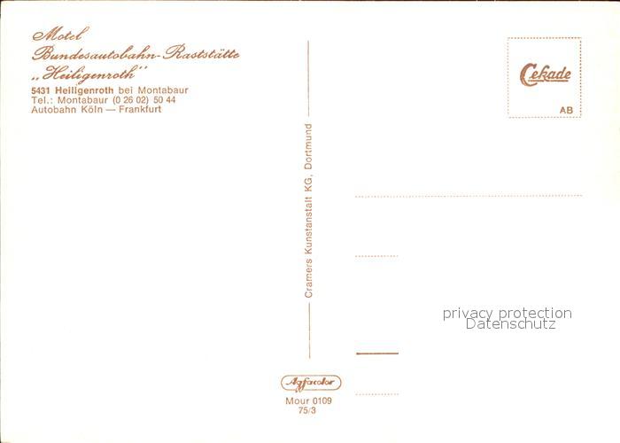 72572549 Heiligenroth Motel Bundesautobahn Raststaette Heiligenroth postalisch nicht gelaufen Erhaltung siehe scans [LiesaD40] KatCode: 11110007143027
