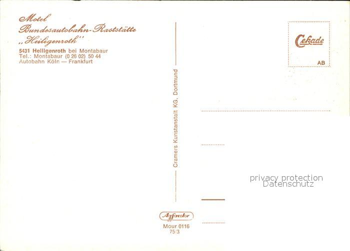 72572550 Heiligenroth Motel Bundesautobahn Raststaette Heiligenroth postalisch nicht gelaufen Erhaltung siehe scans [LiesaD40] KatCode: 11110007143027