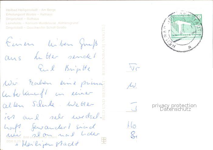 72370747 alte Postkarte Heiligenstadt Eichsfeld Am Berge Kirche Worbis Rathaus Dingestaedt Geschwister Scholl Strasse Leinefelde Waldklause postalisch gelaufen Erhaltung siehe scans KatCode: 11110016061045