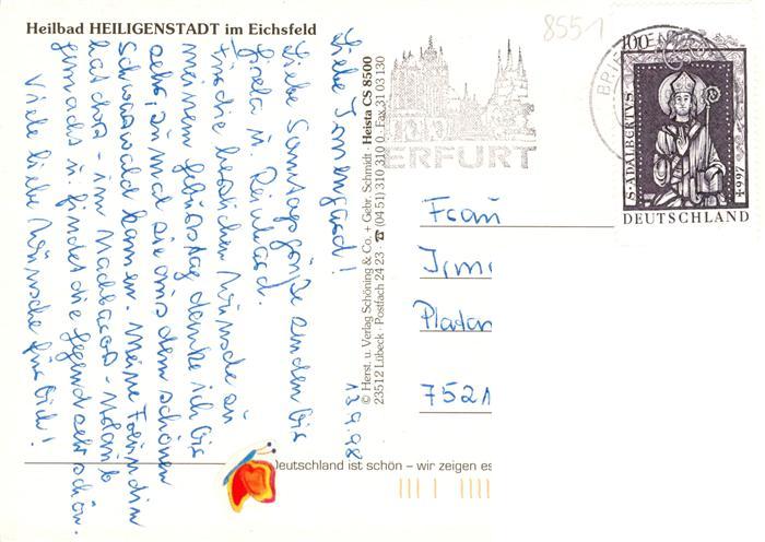 73932203 alte Postkarte Heiligenstadt Eichsfeld Fliegeraufnahme postalisch gelaufen Erhaltung siehe scans [WerneD78] KatCode: 11110016061045