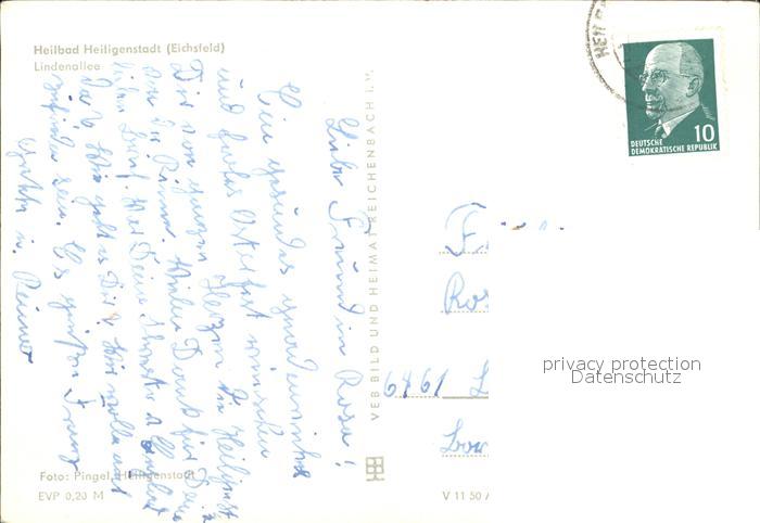 72030739 alte Postkarte Heiligenstadt Eichsfeld Lindenallee Kirche Springbrunnen postalisch gelaufen Erhaltung siehe scans KatCode: 11110016061045