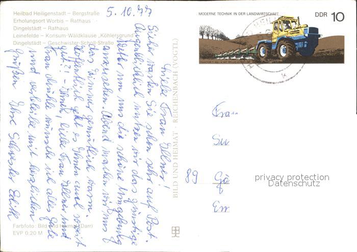 72323455 alte Postkarte Heiligenstadt Eichsfeld mit Worbis Rathaus Dingelstaedt Rathaus Geschwister Scholl Str Leinefelde Konsum Waldklause Koehlersgrund postalisch gelaufen Erhaltung siehe scans KatCode: 11110016061045