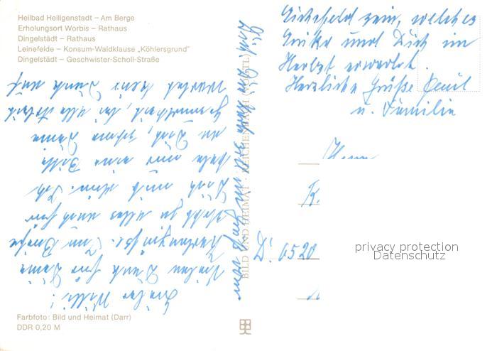 72931511 Heiligenstadt Eichsfeld Worbis Rathaus Leinefelde Konsum Waldklause Koehlersgrund postalisch nicht gelaufen Erhaltung siehe scans [KathaD81] KatCode: 11110016061045