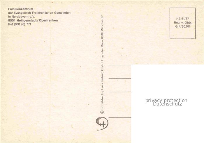 74022602 Heiligenstadt Oberfranken Familienzentrum der ev.-freikirchlichen Gemeinden Nordbayern e.V. postalisch nicht gelaufen Fliegeraufnahme Erhaltung siehe scans [FriedD77] KatCode: 11110009471142