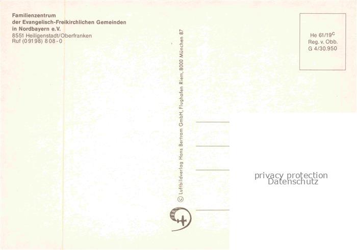 74022613 Heiligenstadt Oberfranken Familienzentrum der ev.-freikirchlichen Gemeinden Nordbayern e.V. postalisch nicht gelaufen Fliegeraufnahme Erhaltung siehe scans [FriedD77] KatCode: 11110009471142