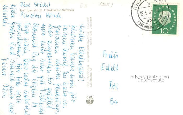 73734906 alte Postkarte Heiligenstadt Oberfranken Gasthof Hoesch Kirche Partie am Bach postalisch gelaufen Erhaltung siehe scans [FriedD77] KatCode: 11110009471142