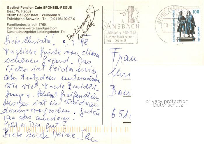 73615863 alte Postkarte Heiligenstadt Oberfranken Gasthof Pension Cafe Sponsel Regus Panorama postalisch gelaufen Erhaltung siehe scans [WerneD78] KatCode: 11110009471142