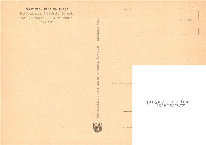 73569311 Heiligenstadt Oberfranken Gasthof-Pension F?rst postalisch nicht gelaufen Erhaltung siehe scans [PaolaD17] KatCode: 11110009471142