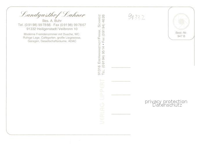 73648730 Heiligenstadt Oberfranken Landgasthof Lahner Gaststube Gartenterrasse Fliegeraufnahme postalisch nicht gelaufen Erhaltung siehe scans [WerneD78] KatCode: 11110009471142