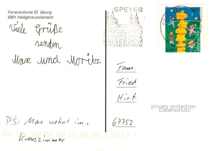 73785246 alte Postkarte Heiligkreuzsteinach Ferienkolonie St Georg Fliegeraufnahme postalisch gelaufen Erhaltung siehe scans [WerneD78] KatCode: 11110008226029