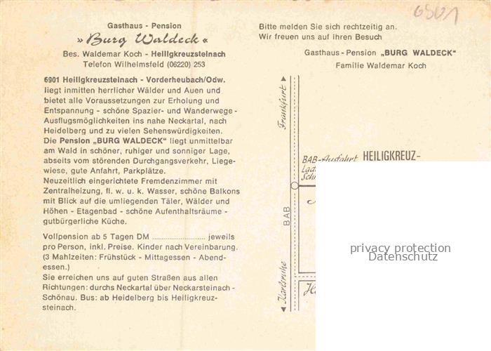74048566 Heiligkreuzsteinach Heidelberg BW Gasthaus Pension Burg Waldeck Gastraeume postalisch nicht gelaufen Werbekarte (keine Postkarte) Erhaltung siehe scans [WerneD78] KatCode: 11110008226029