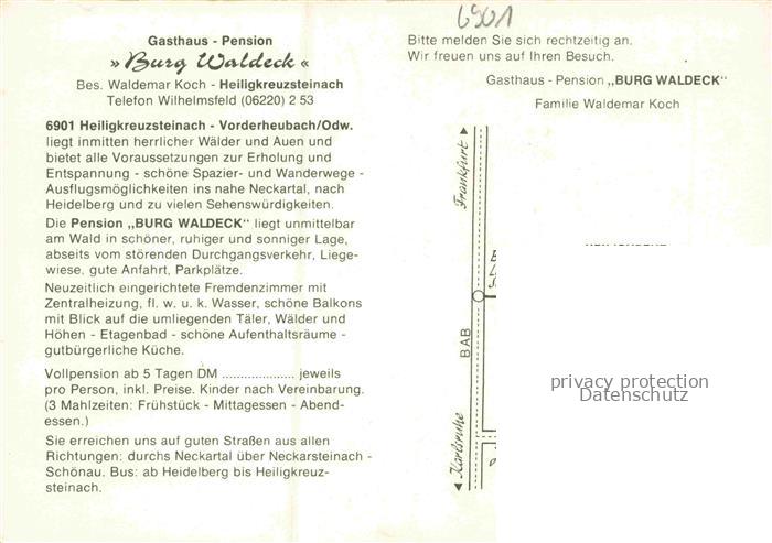 74048576 Heiligkreuzsteinach Heidelberg BW Gasthaus Pension Burg Waldeck Gastraeume postalisch nicht gelaufen Werbekarte (keine Postkarte) Erhaltung siehe scans [WerneD78] KatCode: 11110008226029