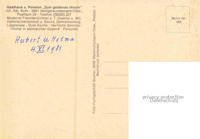 74048637 Heiligkreuzsteinach Heidelberg BW Panorama postalisch nicht gelaufen Erhaltung siehe scans [WerneD78] KatCode: 11110008226029