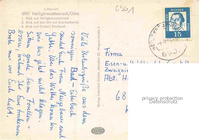 74048770 alte Postkarte Heiligkreuzsteinach Heidelberg BW Panorama Eiterbachtal OT Eiterbach postalisch gelaufen Erhaltung siehe scans [WerneD78] KatCode: 11110008226029