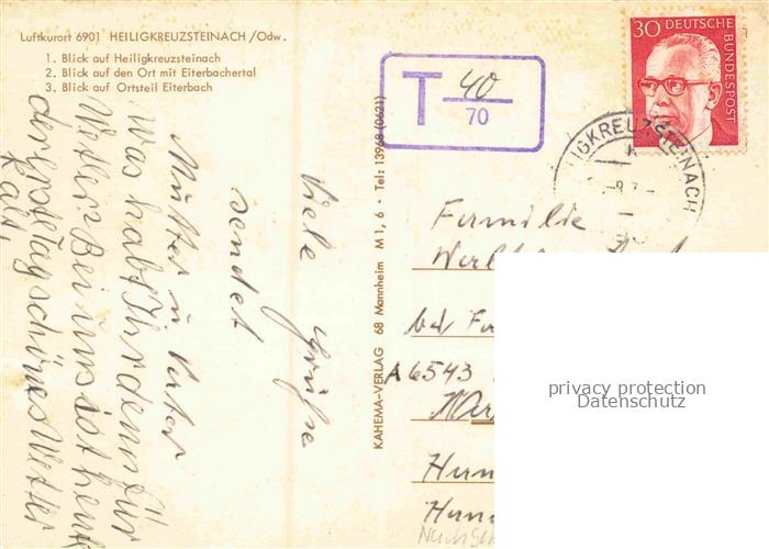 74048610 alte Postkarte Heiligkreuzsteinach Heidelberg BW Panorama Ortsansicht mit Eiterbachertal OT Eiterbach Kirche postalisch gelaufen Erhaltung siehe scans [WerneD78] KatCode: 11110008226029