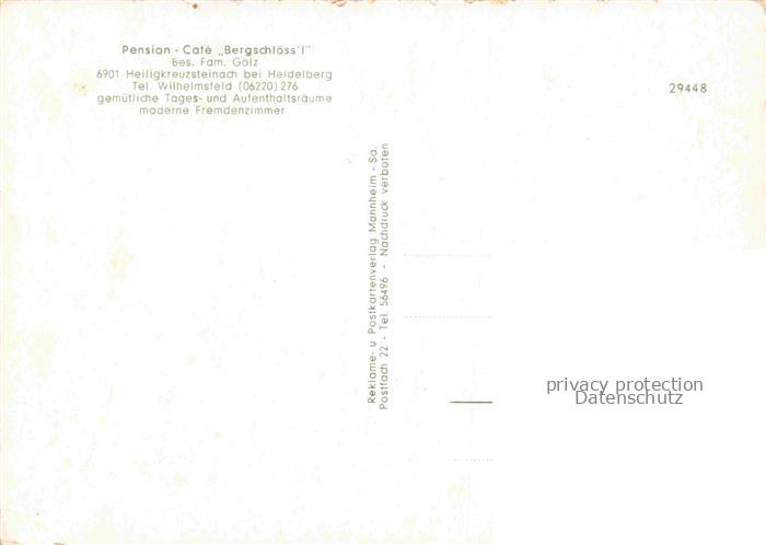 74048440 Heiligkreuzsteinach Heidelberg BW Pension Café Bergschloessl Gastraum postalisch nicht gelaufen Erhaltung siehe scans [FriedD77] KatCode: 11110008226029
