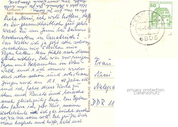 72911970 alte Postkarte Heiligkreuzsteinach Reh postalisch gelaufen Erhaltung siehe scans [NatalD47] KatCode: 11110008226029