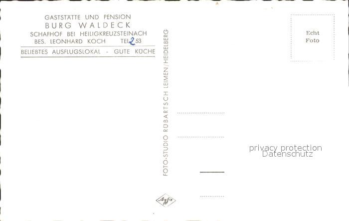 72096691 Heiligkreuzsteinach Restaurant Pension Burg Waldeck postalisch nicht gelaufen Erhaltung siehe scans KatCode: 11110008226029
