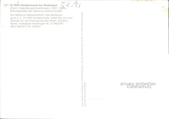72419205 Heiligkreuztal Ehem Zisterzienserinnenkloster Bildungsstaette der Stefanus Gemeinschaft Fliegeraufnahme postalisch nicht gelaufen Erhaltung siehe scans KatCode: 11110008426008