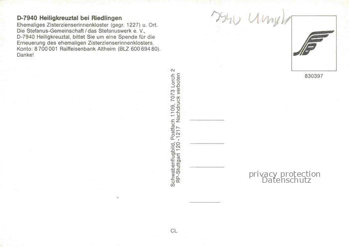 74052610 Heiligkreuztal Ehemaliges Zisterzienserinnenkloster 13. Jhdt. Stefanus-Gemeinschaft postalisch nicht gelaufen Fliegeraufnahme Erhaltung siehe scans [FriedD77] KatCode: 11110008426008