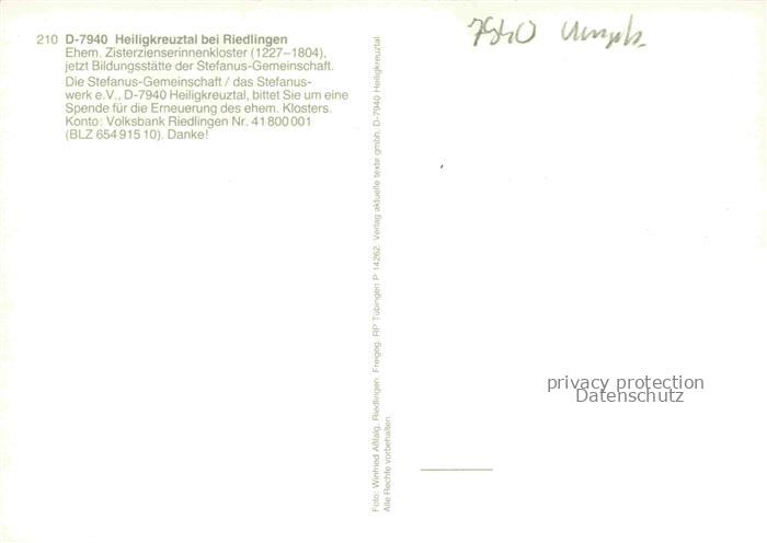 74041120 Heiligkreuztal Ehemaliges Zisterzienserinnenkloster jetzt Bildungsstaette der Stefanus-Gemeinschaft postalisch nicht gelaufen Fliegeraufnahme Erhaltung siehe scans [FriedD77] KatCode: 11110008426008