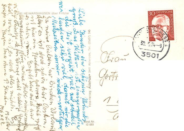 73878155 alte Postkarte Heimarshausen Teilansicht Freibad Kirche postalisch gelaufen Erhaltung siehe scans [FriedD77] KatCode: 11110006633018