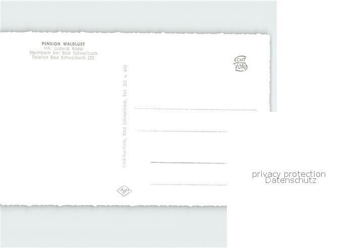 72109364 Heimbach Bad Schwalbach Pension Waldlust postalisch nicht gelaufen Erhaltung siehe scans KatCode: 11110006439002