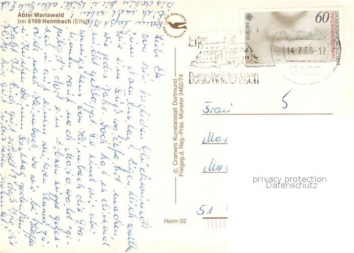 73724482 alte Postkarte Heimbach Eifel Abtei Mariawald Fliegeraufnahme postalisch gelaufen Erhaltung siehe scans [WerneD78] KatCode: 11110005358012