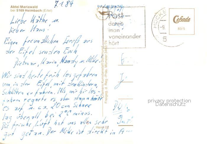 73643313 alte Postkarte Heimbach Eifel Abtei Mariawald Fliegeraufnahme postalisch gelaufen Erhaltung siehe scans [WerneD78] KatCode: 11110005358012