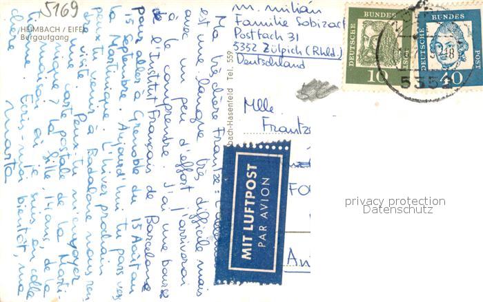 73691745 alte Postkarte Heimbach Eifel Aufgang zur Burg Hengebach postalisch gelaufen Erhaltung siehe scans [FriedD77] KatCode: 11110005358012