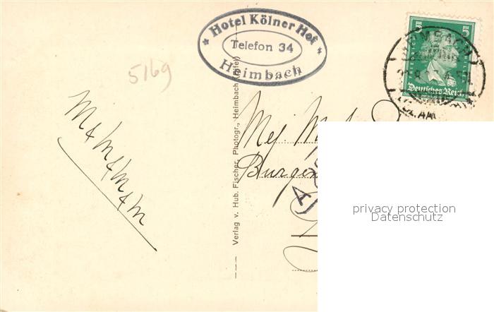 73556321 alte Postkarte Heimbach Eifel Blick von Wartscheidt postalisch gelaufen Erhaltung siehe scans [PaolaD17] KatCode: 11110005358012