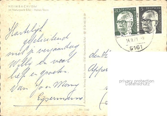72597576 alte Postkarte Heimbach Eifel Fliegeraufnahme Hohes Venn Brueckenpartie postalisch gelaufen Erhaltung siehe scans [LiesaD40] KatCode: 11110005358012