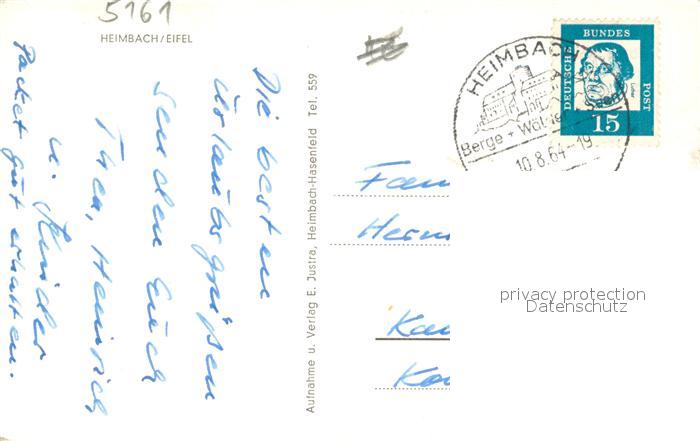 73691481 alte Postkarte Heimbach Eifel Freibad Fliegeraufnahme postalisch gelaufen Erhaltung siehe scans [FriedD77] KatCode: 11110005358012