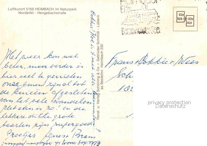 72892995 alte Postkarte Heimbach Eifel Hengebachstrasse postalisch gelaufen Erhaltung siehe scans [LiesaD40] KatCode: 11110005358012