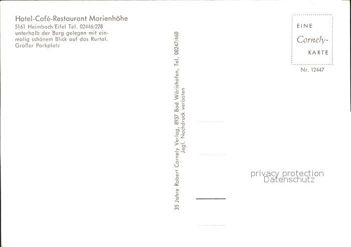 72297989 Heimbach Eifel Hotel Cafe Restaurant Marienhoehe postalisch nicht gelaufen Erhaltung siehe scans KatCode: 11110005358012