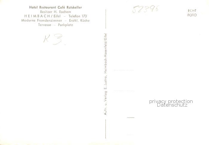 73866977 Heimbach Eifel Hotel Restaurant Cafe Ratskeller Terrasse Gastraeume postalisch nicht gelaufen Erhaltung siehe scans [WerneD78] KatCode: 11110005358012