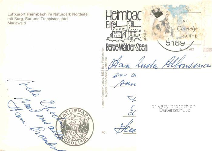 72872206 alte Postkarte Heimbach Eifel mit Burg Rur- und Trappistenabtei Mariawald Minigolf postalisch gelaufen Erhaltung siehe scans [LiesaD40] KatCode: 11110005358012