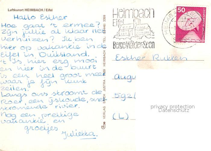 72932301 alte Postkarte Heimbach Eifel mit Kirche und Burg postalisch gelaufen Erhaltung siehe scans [WerneD78] KatCode: 11110005358012