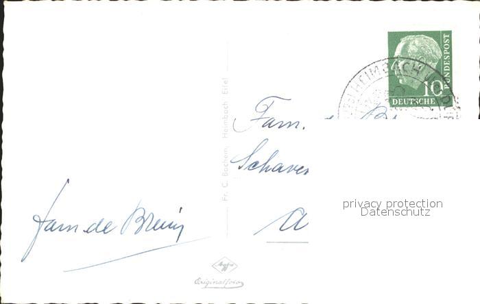 72030560 alte Postkarte Heimbach Eifel Ortsblick Kirche Burg postalisch gelaufen Erhaltung siehe scans KatCode: 11110005358012